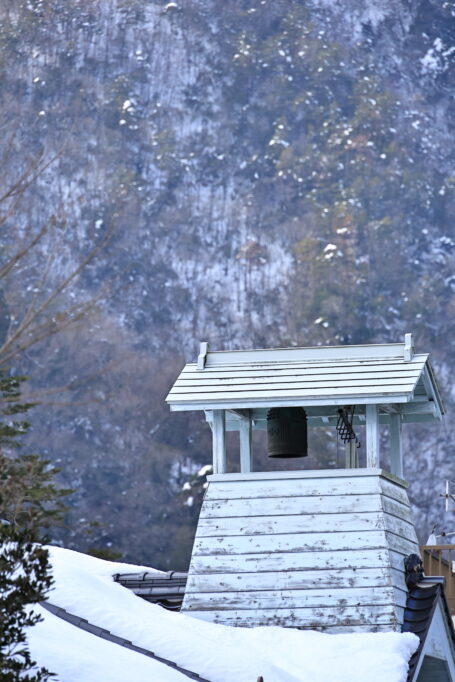 屋上には災害を知らせる鐘。