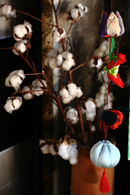 店舗内に綿花のオブジェ。
