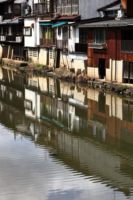 水路に接し長屋が林立する。